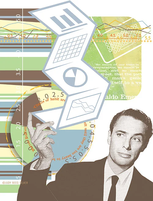 Illustration series inspired by significant quotes: "Efficiency is doing better what is already being done," by Peter F. Drucker.